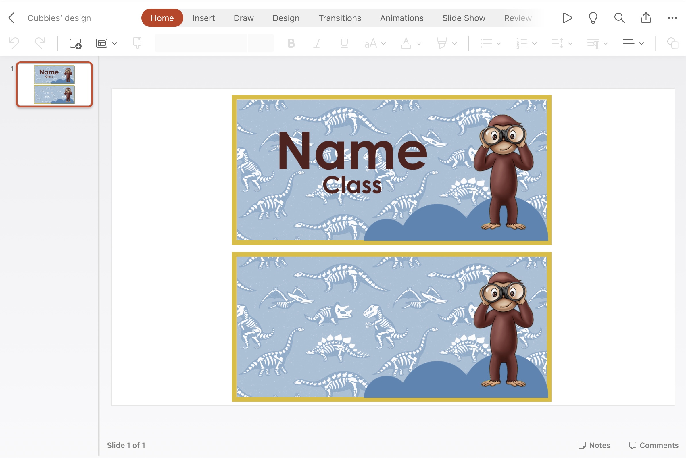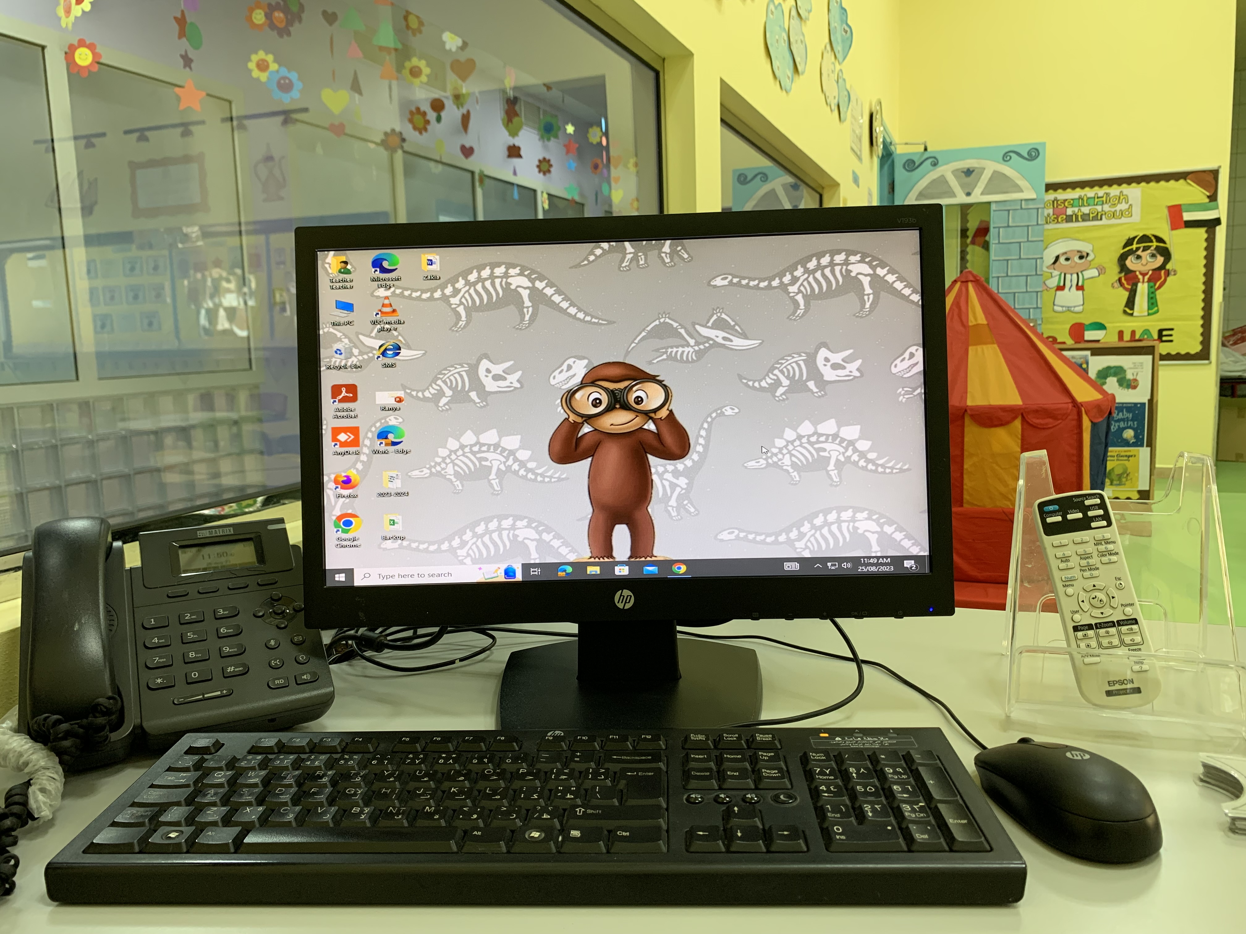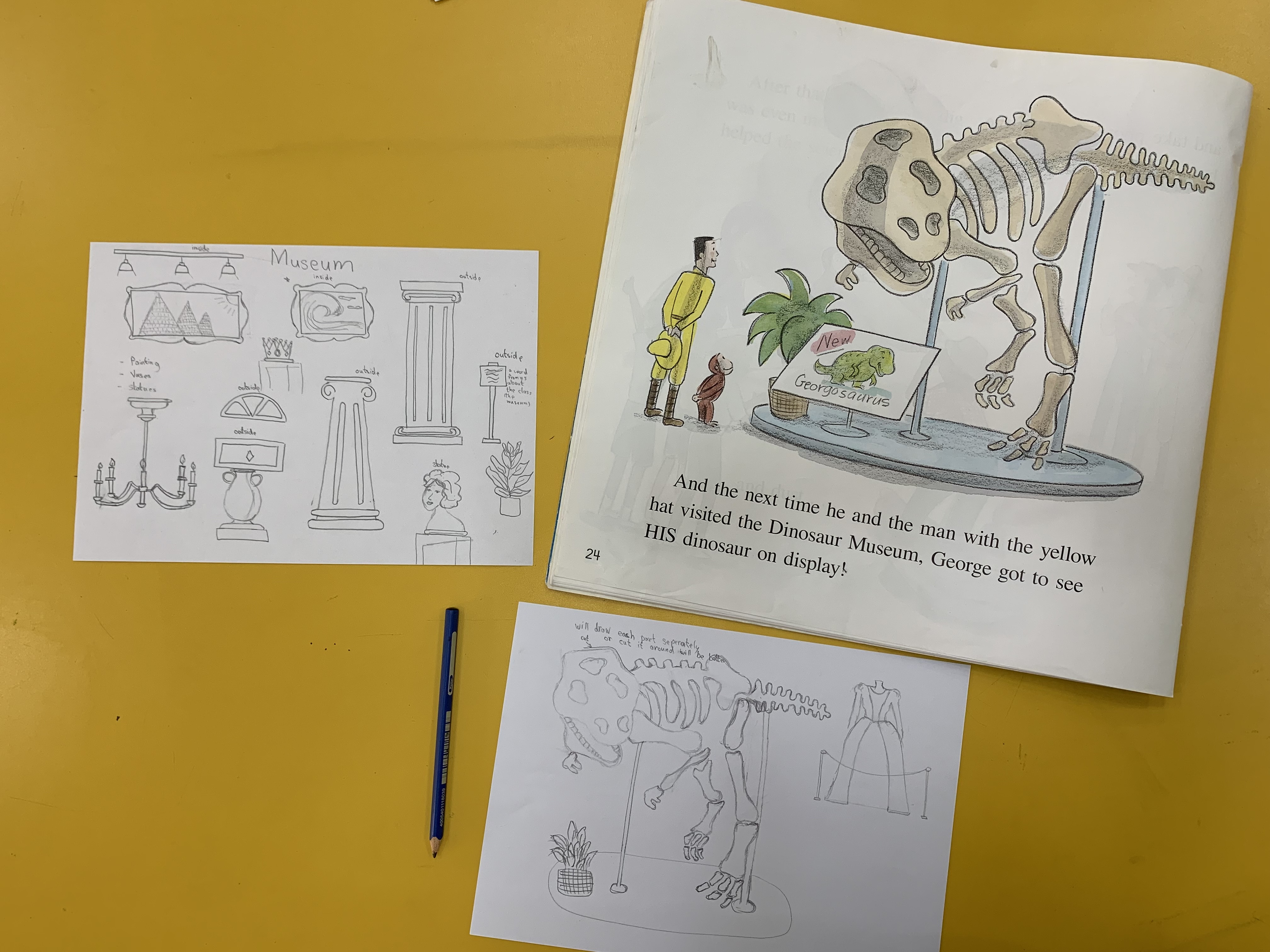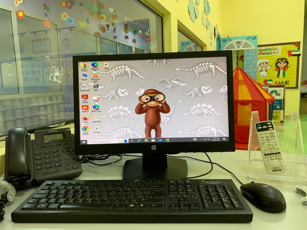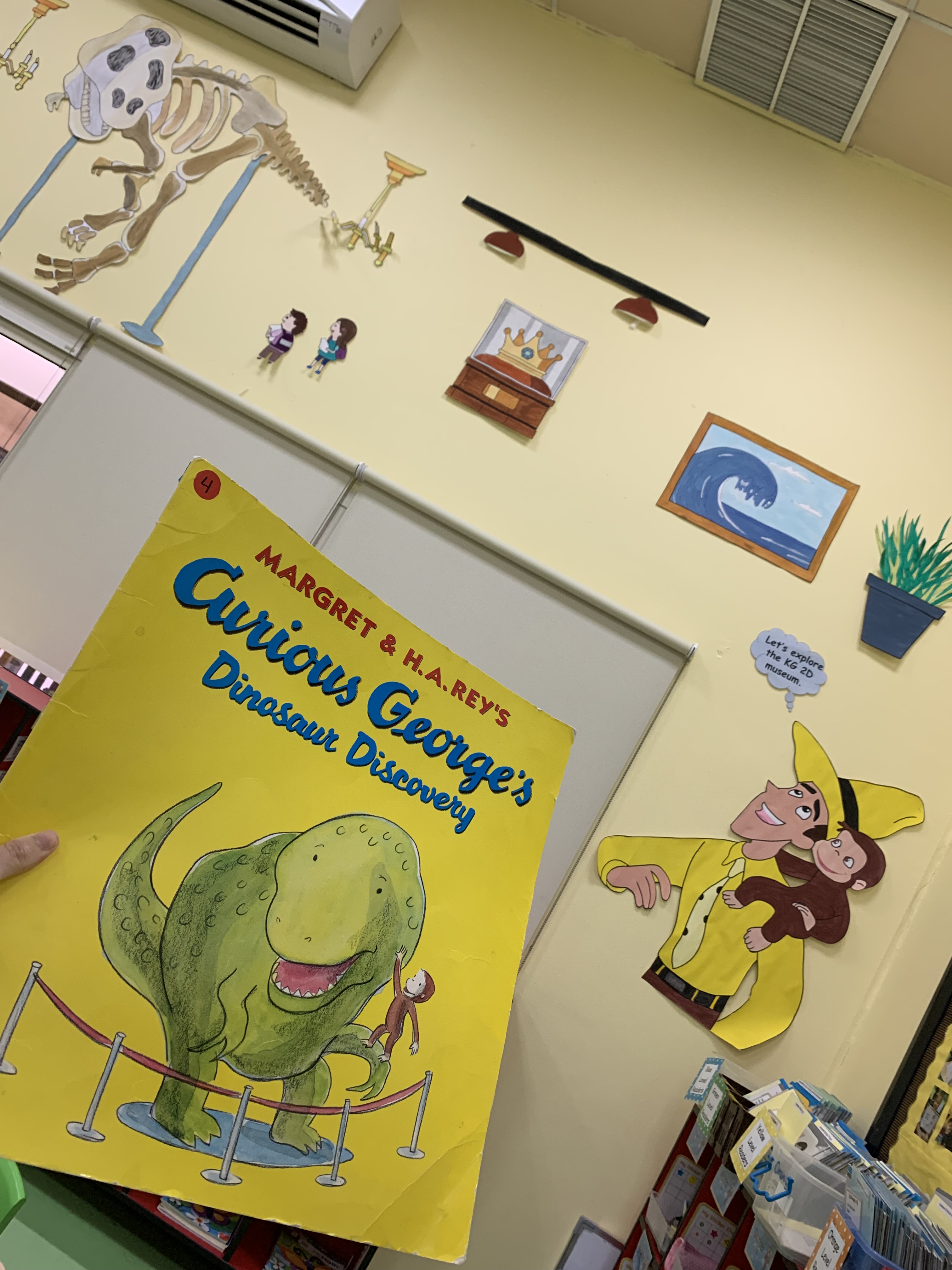 We can’t regret that the story of ‘Curious George Dinosaur Discovery’ inspired me as I’m a big fan of Curious George and specially this story. That’s why I added the character of Curious George and his friend the Man with the yellow hat to the decorations to add more fun to the classroom and attract the kids to it.