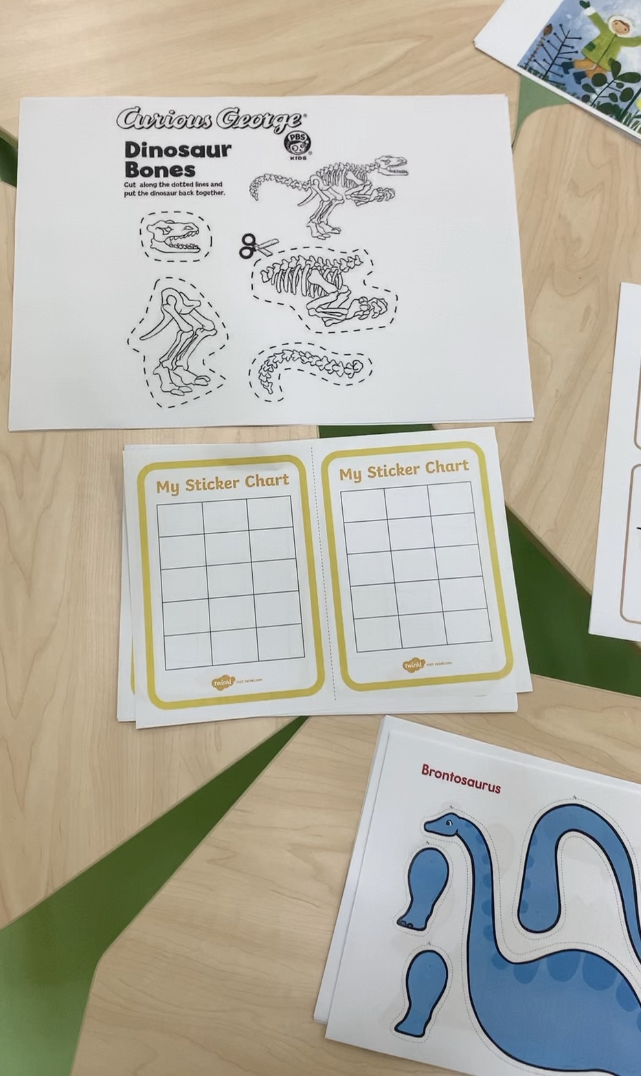 Most of the resources are from https://www.twinkl.ae/ and only one free cutting worksheet from https://pbskids.org/curiousgeorge/printables/dino.html.