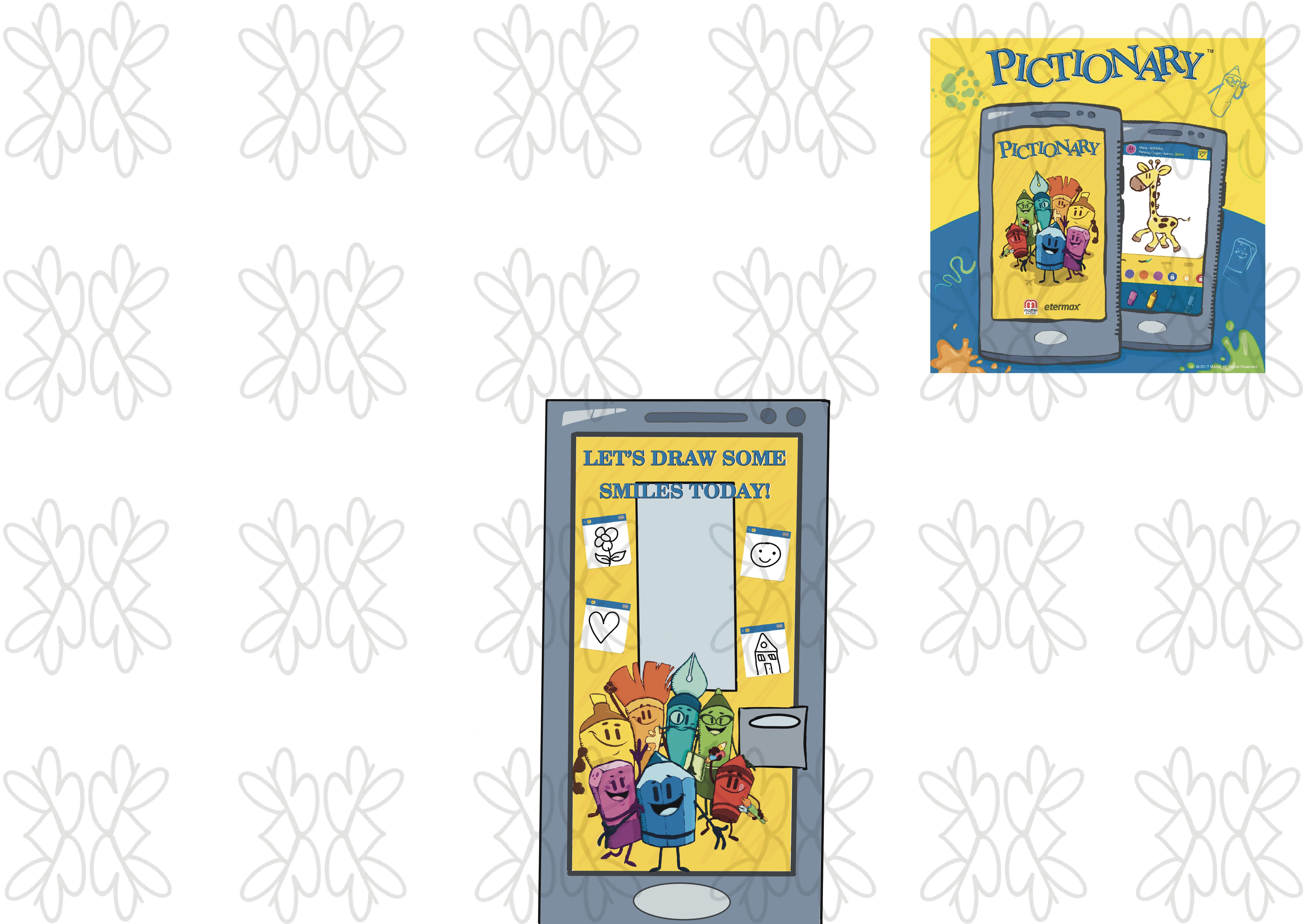 You can print your elements in A4 and A3, cut and stick on the door to get the play dough effect easily.