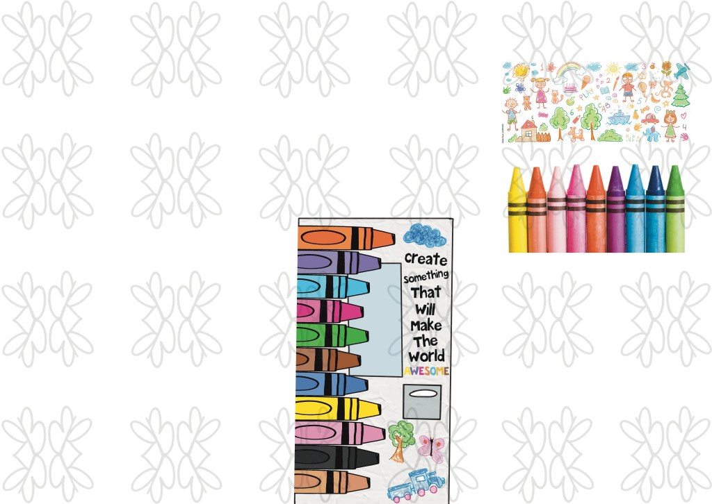There’s something I would like to share about the “Crayons” theme. Usually they use the yellow color for the crayon box, so they use it also for any idea related to the crayons, but in my design I use the white crumpled paper. We want to make something different. We want to be different.