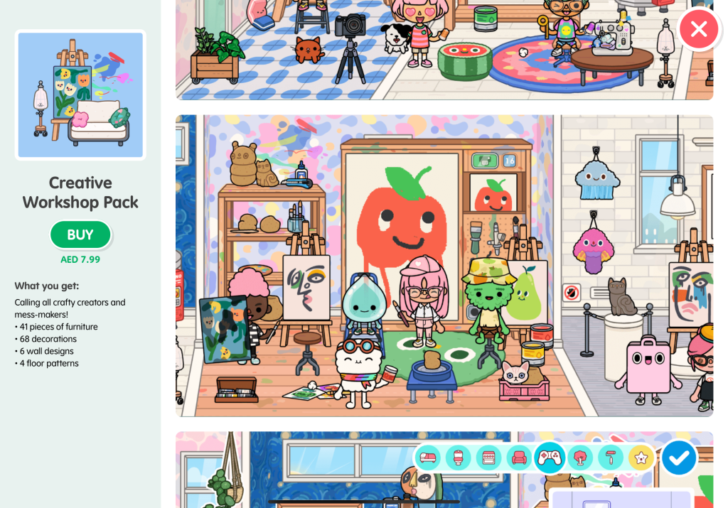 You can’t imagine how many educational activities that you can do with your students through these themes and games. Even the games that you should download on your phone or tablet like Toca World. You can ask your students to create their own characters and decorate their houses and come to school for a “Show and Tell” and let each student express themselves in front of their friends and talk about their work. Later on you can ask them to record a video of a short story with sequence (First, Next, Then and Last). Or simplify it with taking pictures to write simple sentences about each one of them. Even in Math, you can make different math problems using the game.
